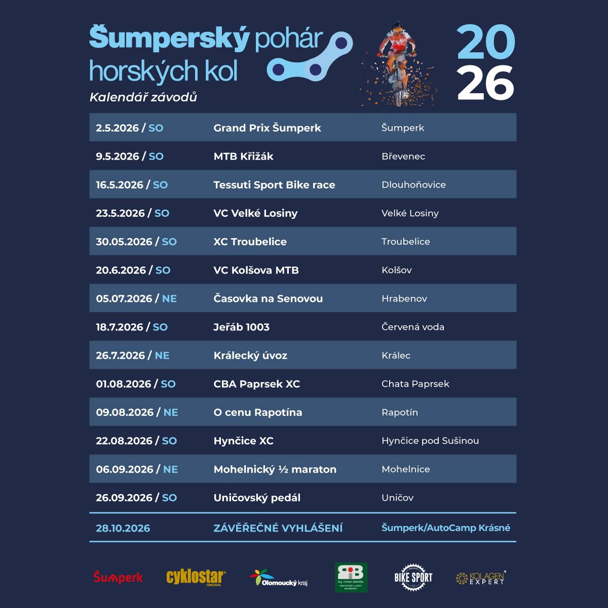 Šumperský pohár horských kol 2026 2.3.2026 TJ Sokol Hrabenov uspořádá Časovku na Senovou v rámci Šumperského poháru horských kol 2026, a to 5. července 2026.